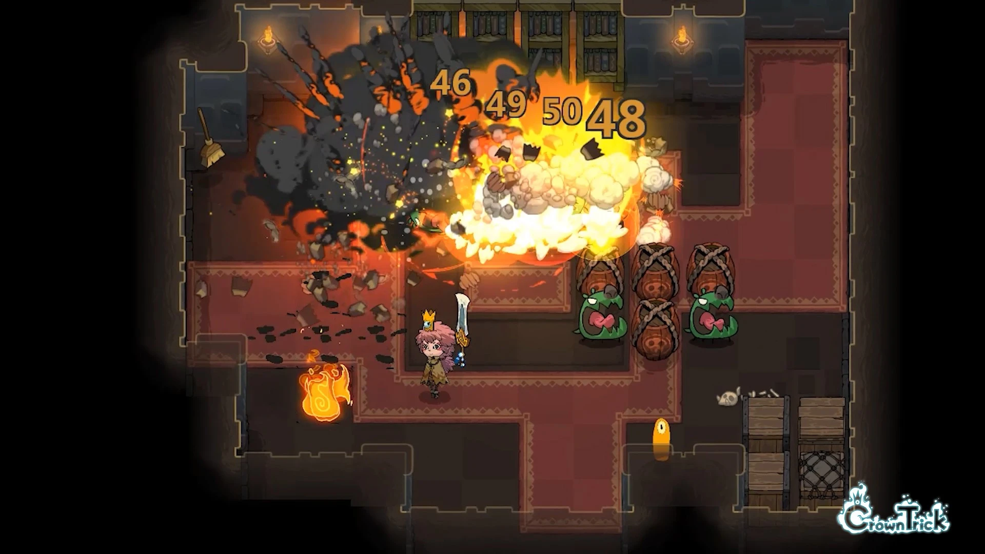 The shifting corridors filled with monstrous foes await within the cursed castle walls of Crown Trick. As the intrepid Familiar, you are bound by ancient pacts guiding your progress through randomly generated, subterranean levels teeming with classic action-adventure peril, demanding tactical expertise at every turn.