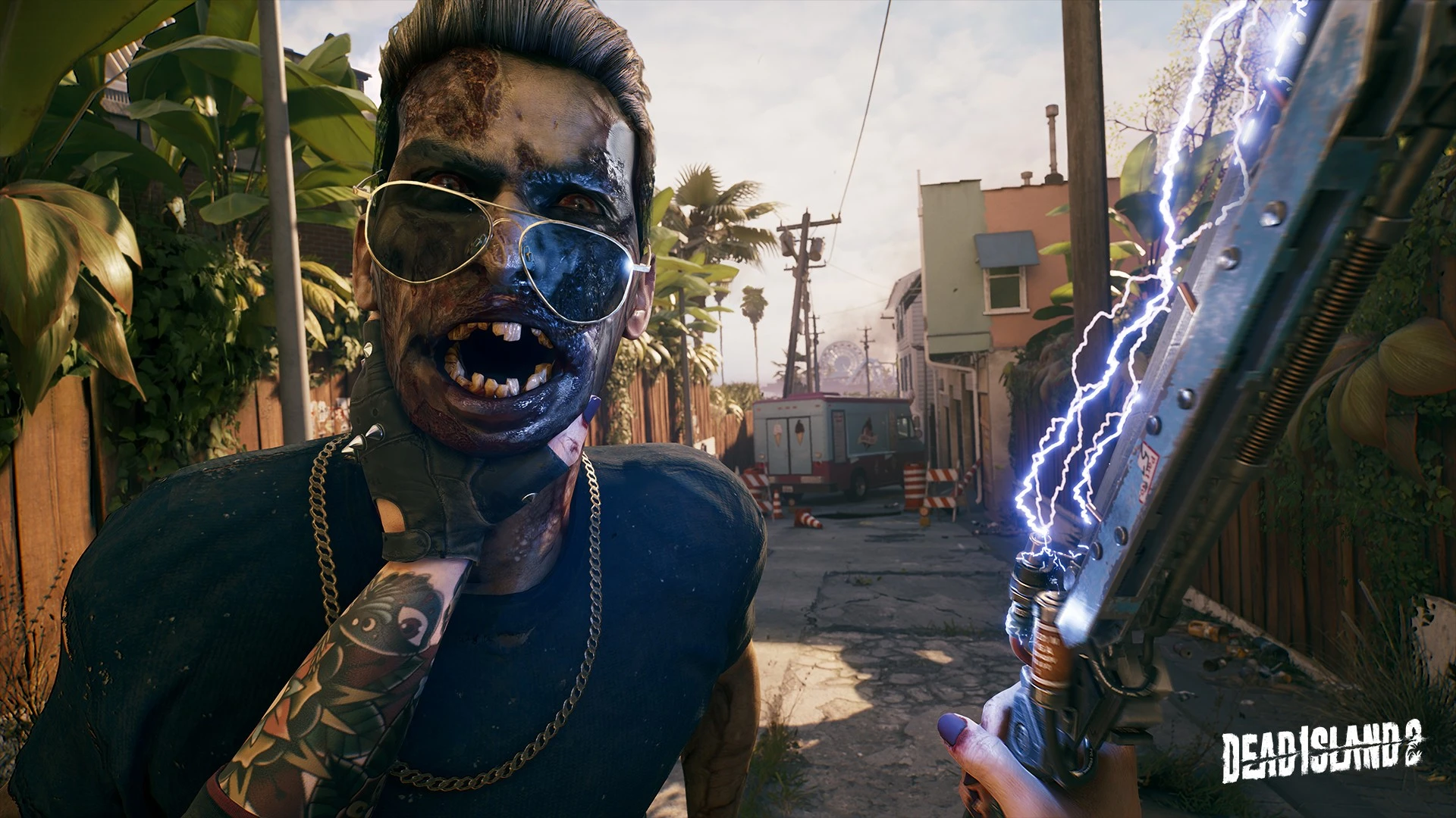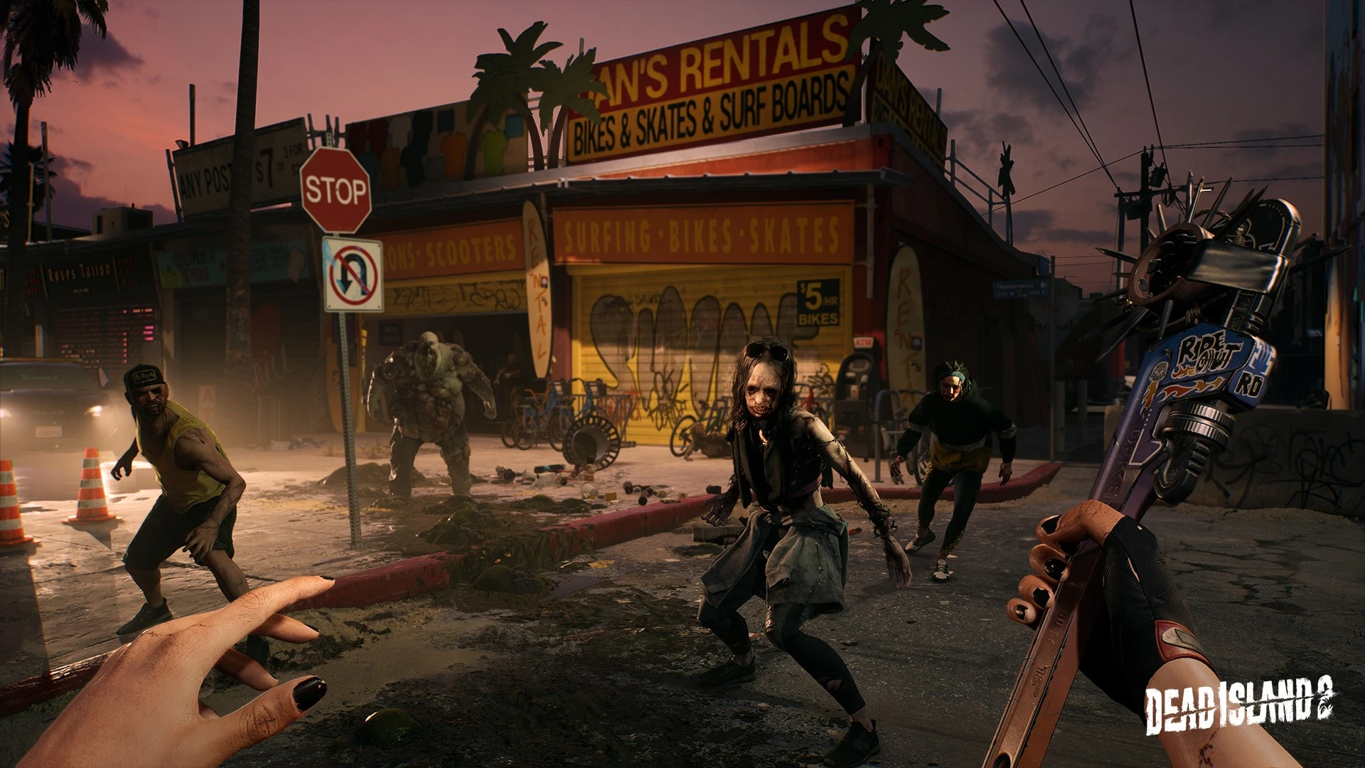 Master intense, up-close combat featuring the unique Flesh system, allowing for highly detailed enemy dismantling. This environment demands skilled first-person slasher techniques as you navigate the sun-scorched streets and iconic landmarks now crawling with mutated undead.