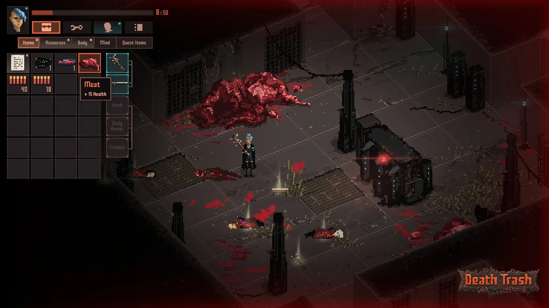 Venture into the bizarre, decaying post-apocalypse of Death Trash, a setting teeming with mutated life, strange factions, and visceral conflict. This derelict world requires a resourceful survivor capable of mastering its bizarre blend of horror and dark comedy while navigating the harsh reality of a world gone wrong.