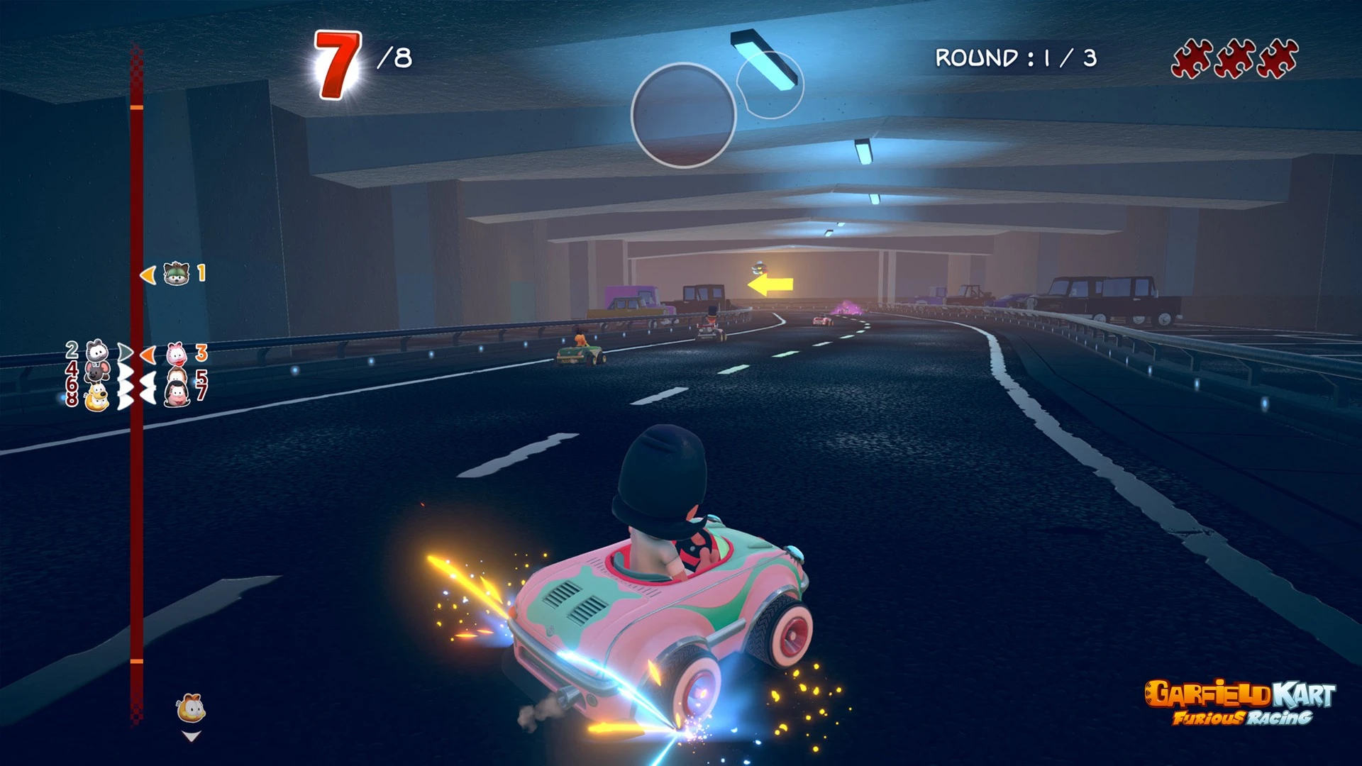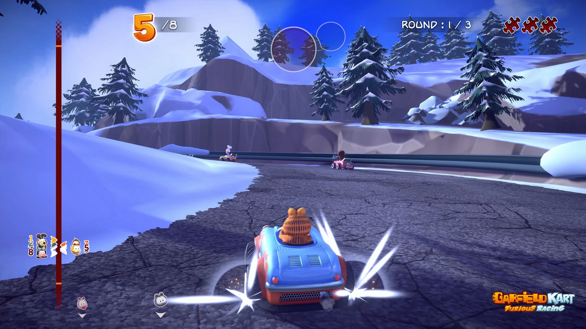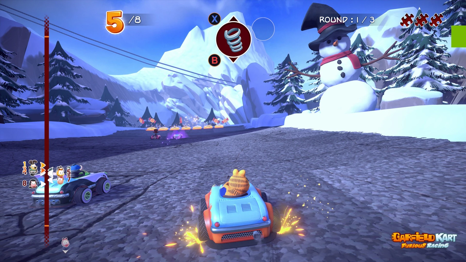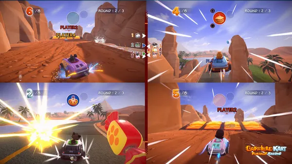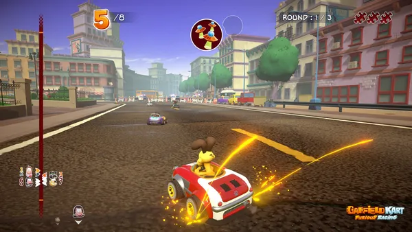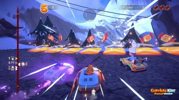 Only skill and timing determine who remains champion in the mayhem of Garfield Kart - Furious Racing.