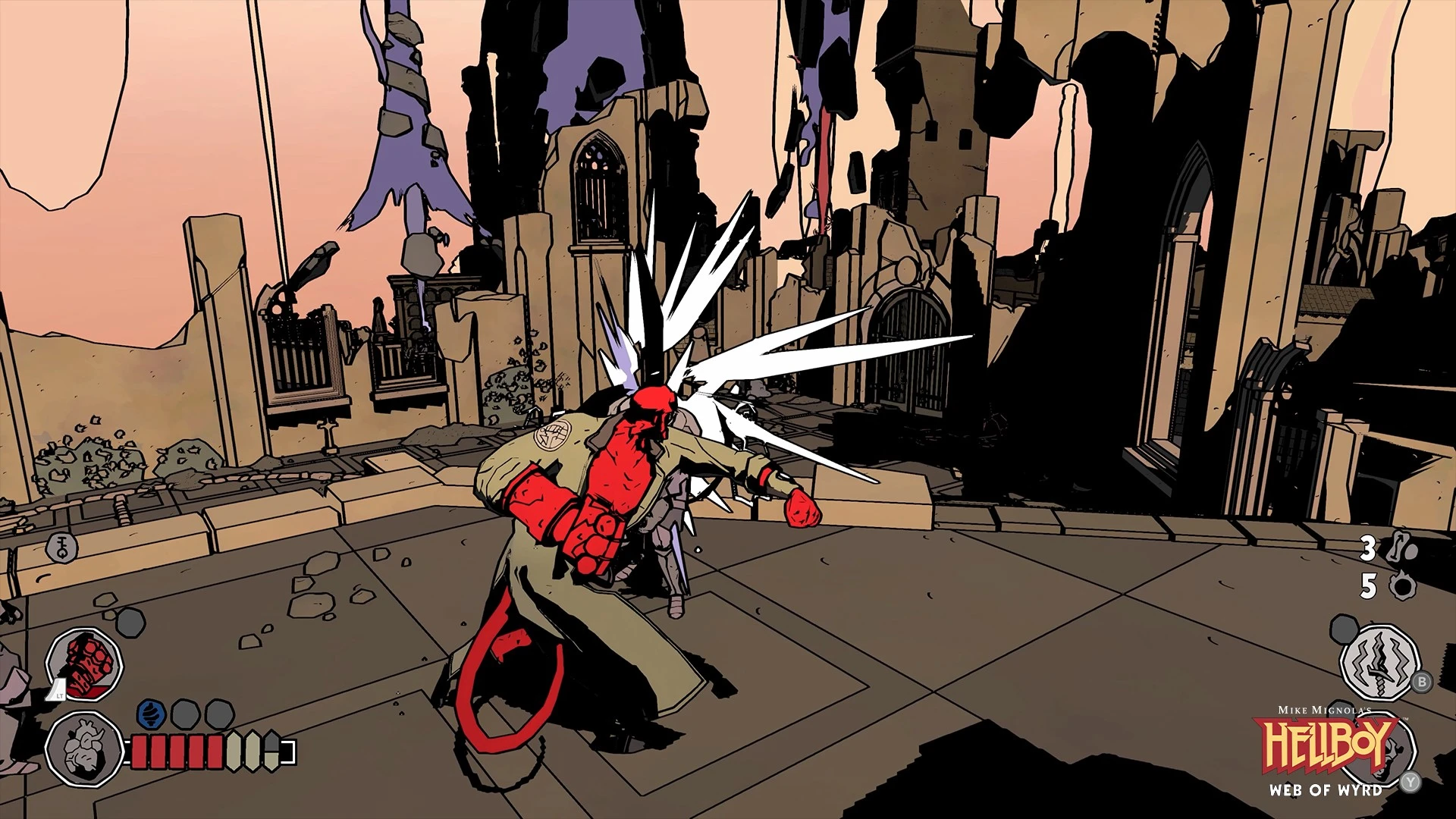 The paranormal is stirring, threatening the fabric of reality, and only the B.P.R.D.'s most famous agent can face the chaos. Enter the strange, beautifully rendered world of Hellboy Web of Wyrd as you confront demons, monsters, and bizarre occult forces summoned from the unknown. This visually stunning action-adventure puts you directly into Hellboy’s oversized, trusty gloves to battle the rising darkness.