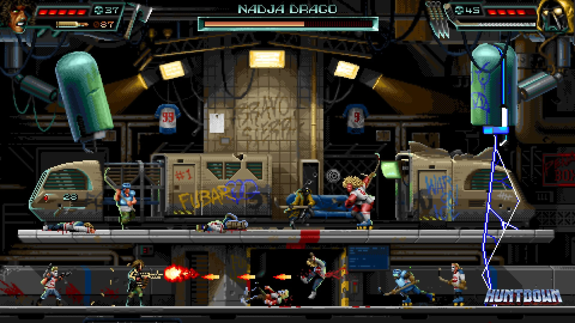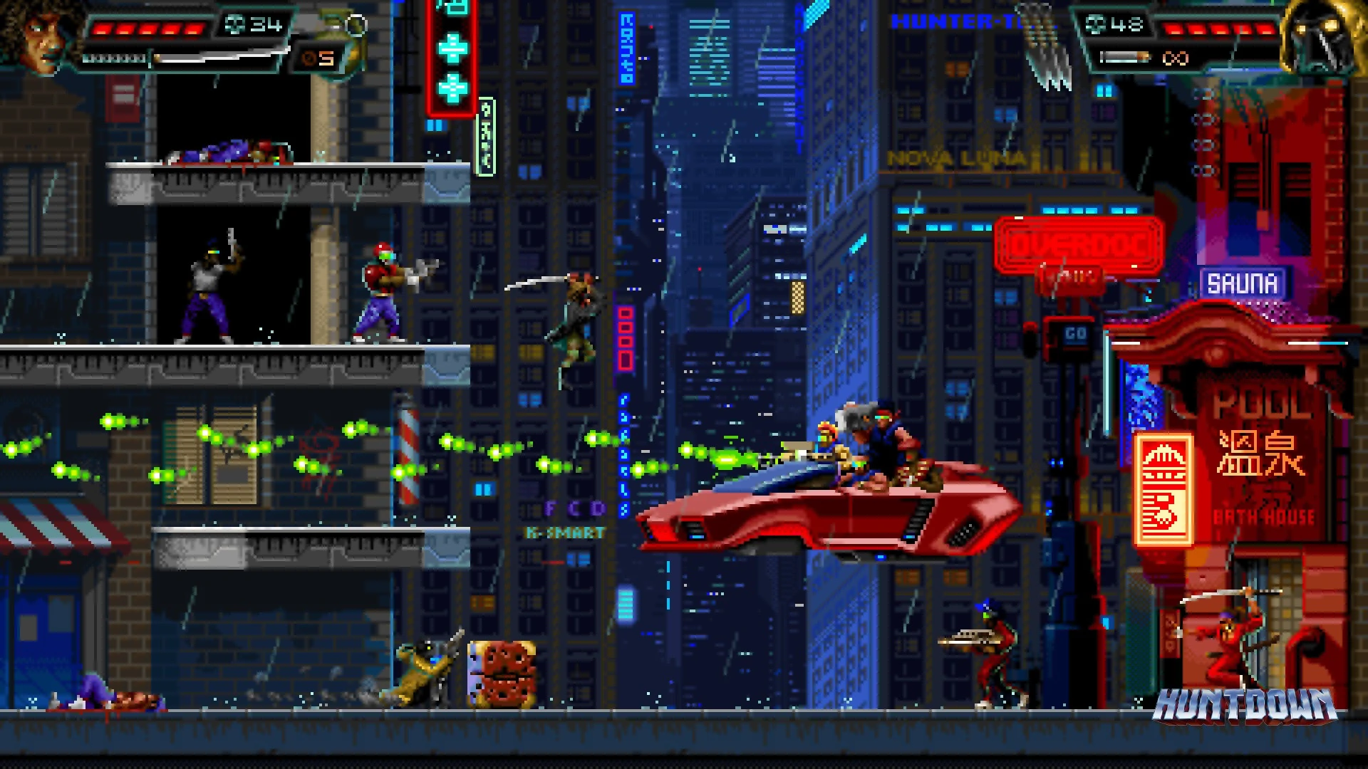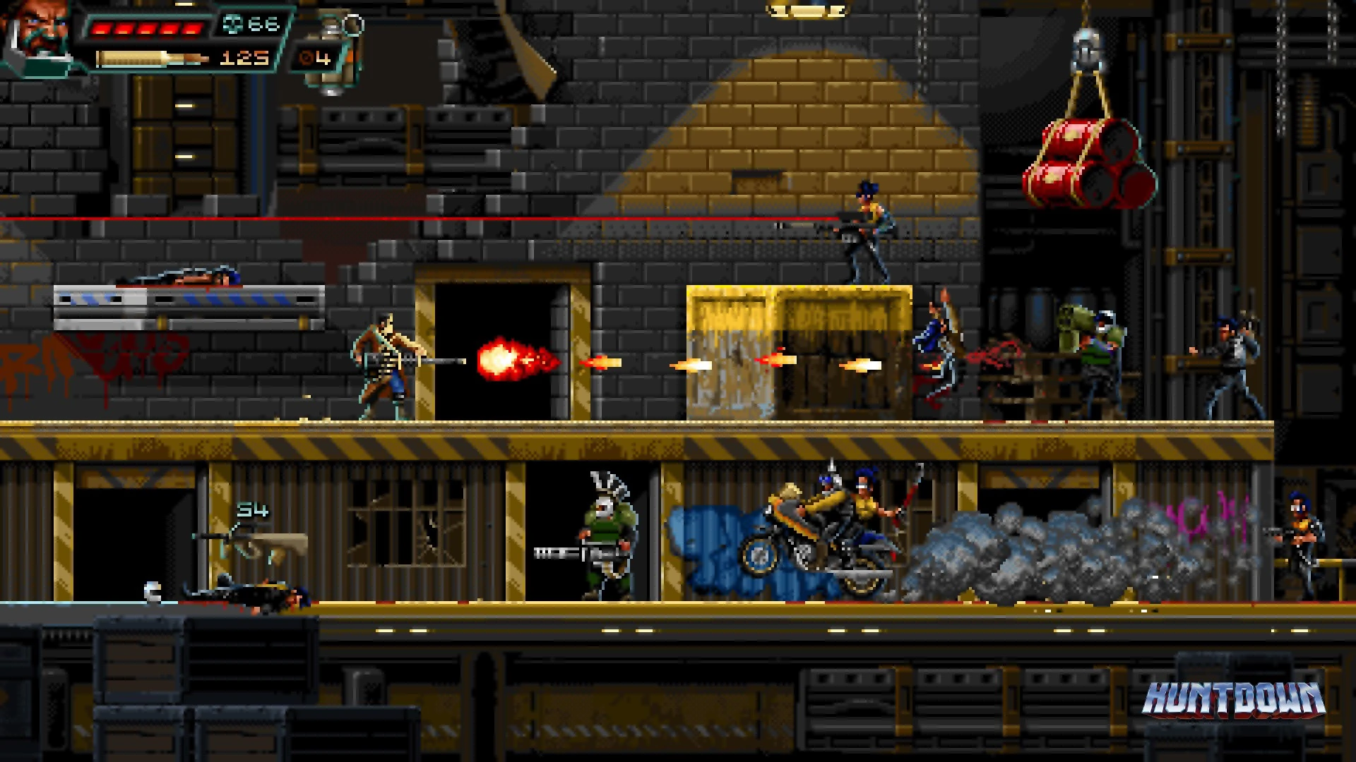- Engage in chaotic 2D arcade action across gritty cityscapes.
