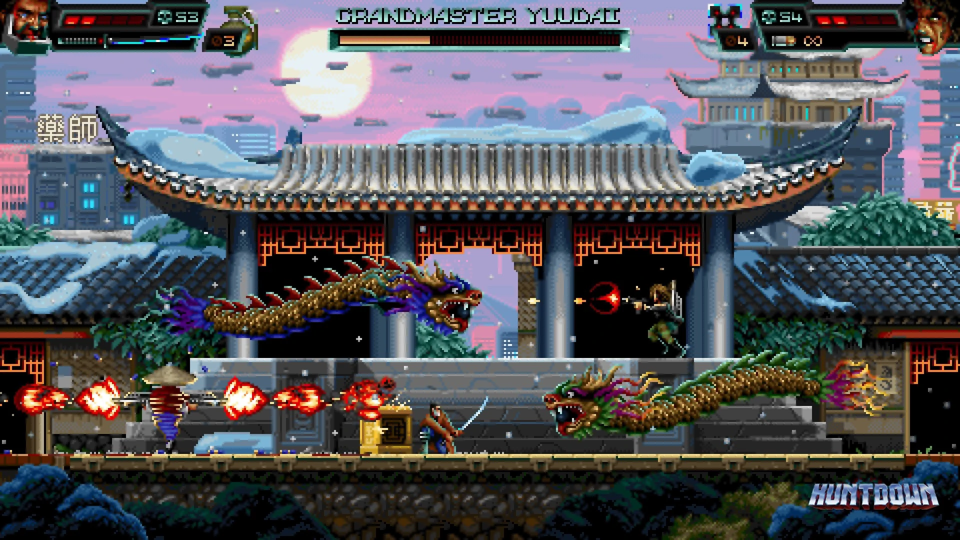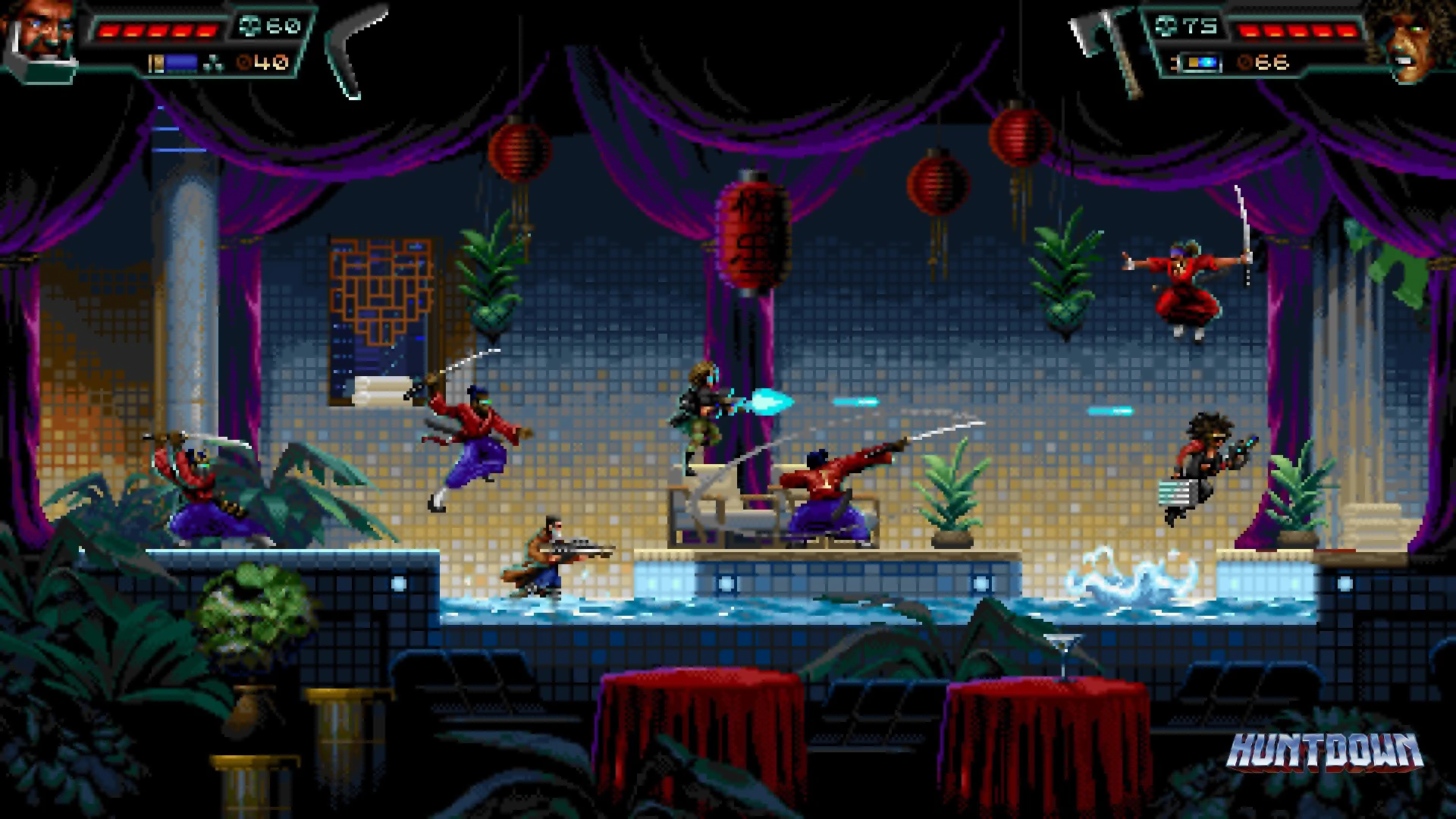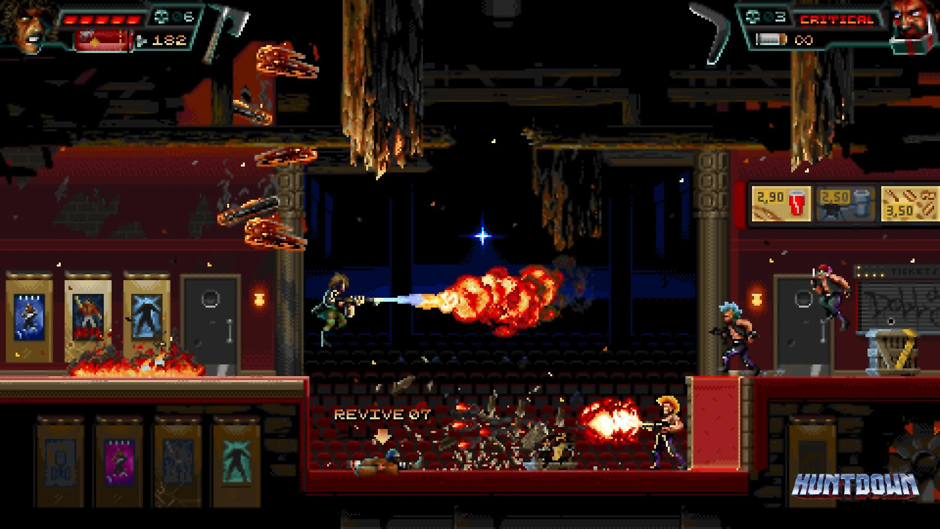 - Engage in chaotic 2D arcade action across gritty cityscapes.