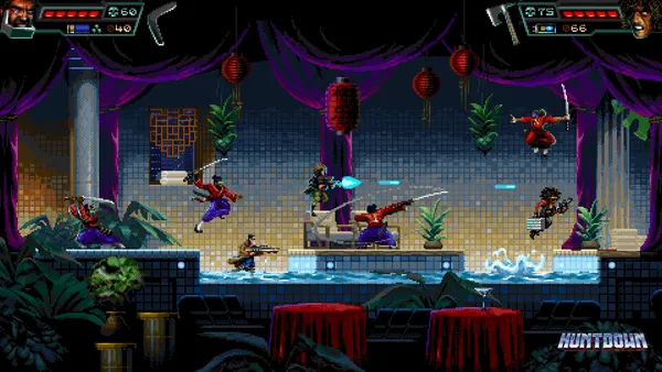 In the neon-drenched sprawl of the near future, bounty hunters are the only law left standing against chaotic super-criminals that run rampant across the concrete jungle. Grab your gear and brace yourself for explosive retro action where every trigger pull matters in this intense 2D side-scrolling shooter. This cyberpunk gauntlet pits hardened mercenaries against relentless waves of dangerous thugs hiding in smoky bars and sky-high high-rises.