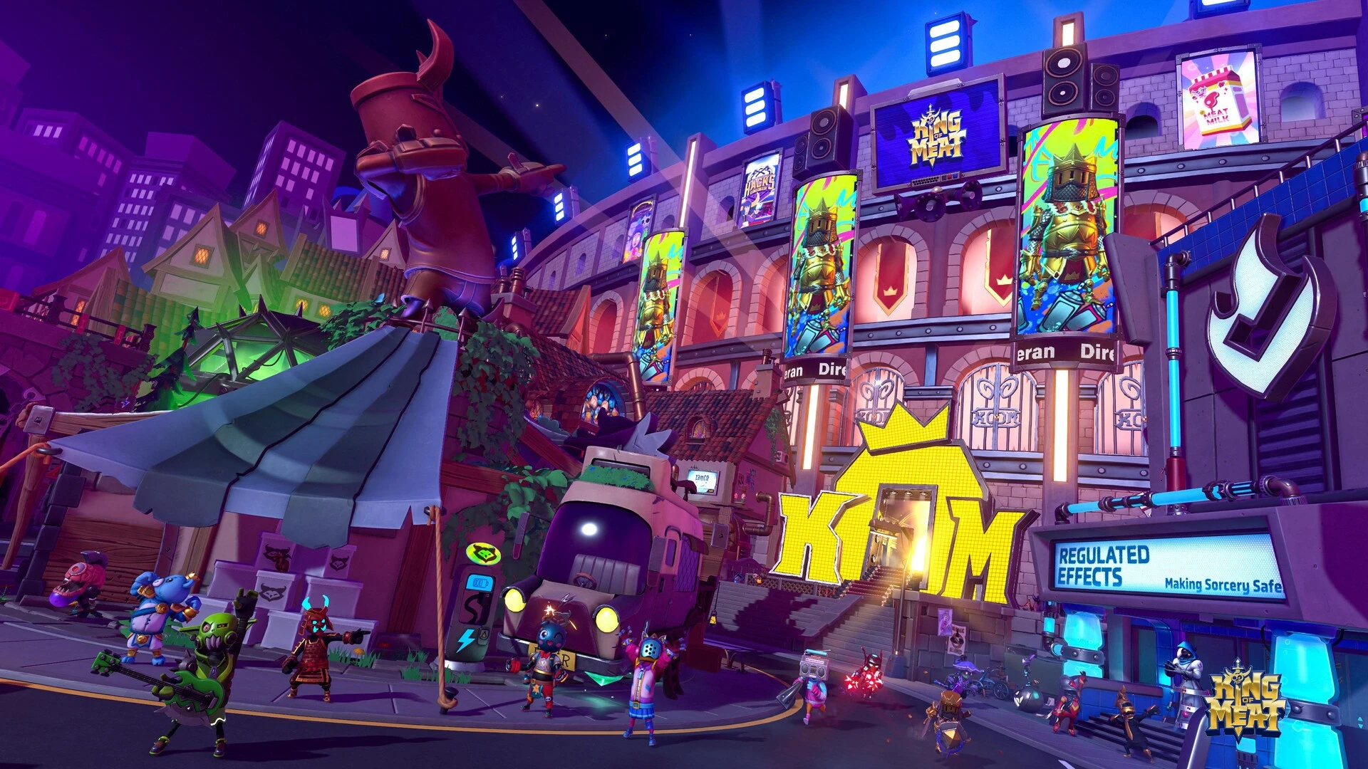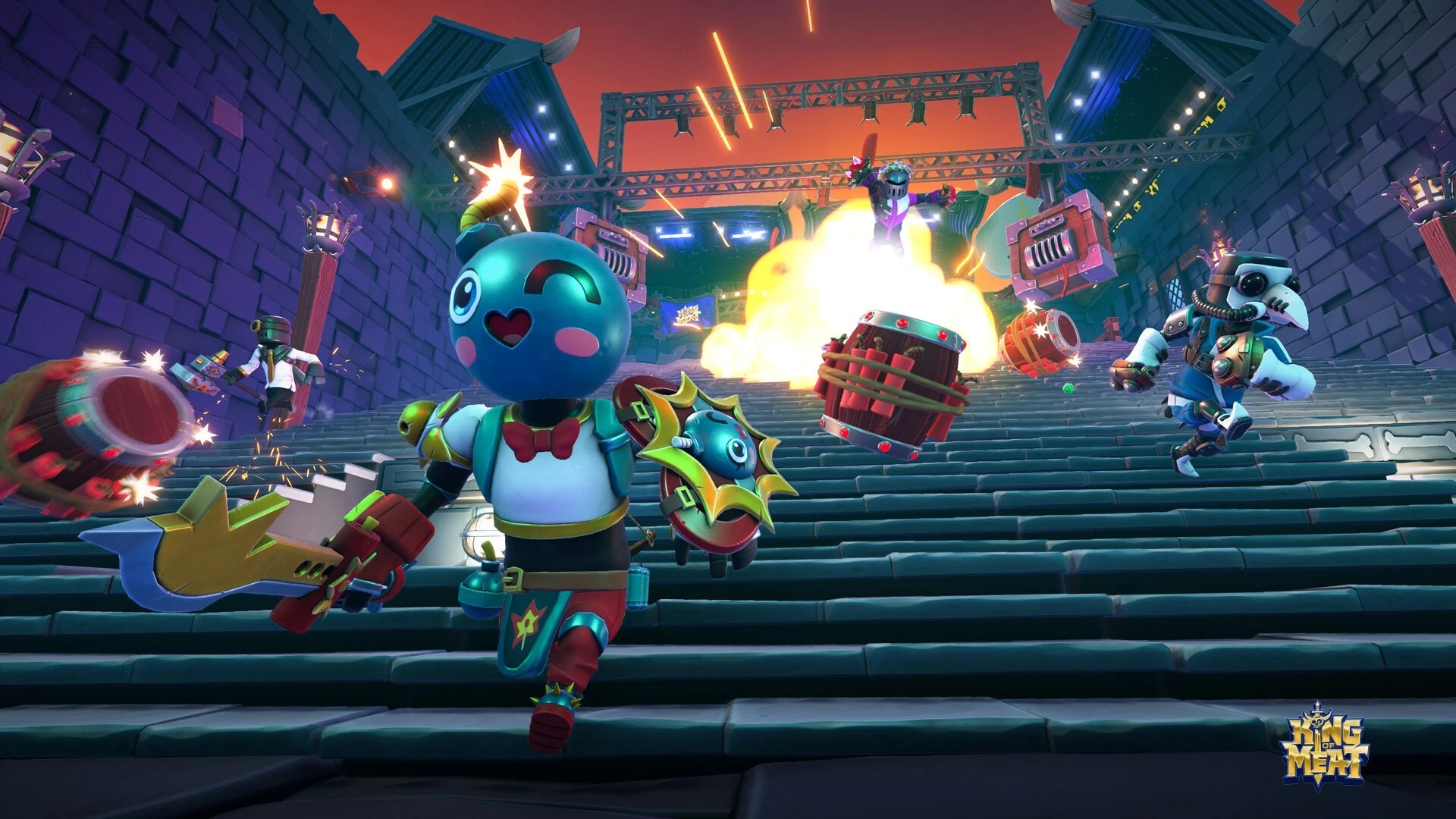 In the corporate-dystopian world of King of Meat, contestants fight for fame in a high-stakes, dungeon-crawling spectacle. This action platformer from Amazon Game Studios pits you against waves of ridiculous enemies and lethal hazards designed solely to entertain a bloodthirsty audience. Every broadcast takes you into treacherous arenas where the only goal is survival and theatrical flair. You will navigate trap-filled dungeons while utilizing specialized combat skills and unique equipment to secure your place on the leaderboard. Casual fans and competitive players can experiment with various strategies to survive these challenges by customizing their gear and persona. Success requires mastered platforming and an appetite for destruction. * Battle through cleverly designed puzzles and obstacle courses that reward precision and timing. * Launch the King of Meat experience instantly on any supported device through GeForce NOW without waiting. * High-fidelity performance and seamless cloud saves ensure your progress follows you everywhere. The quest for global glory begins as soon as the cameras start rolling.