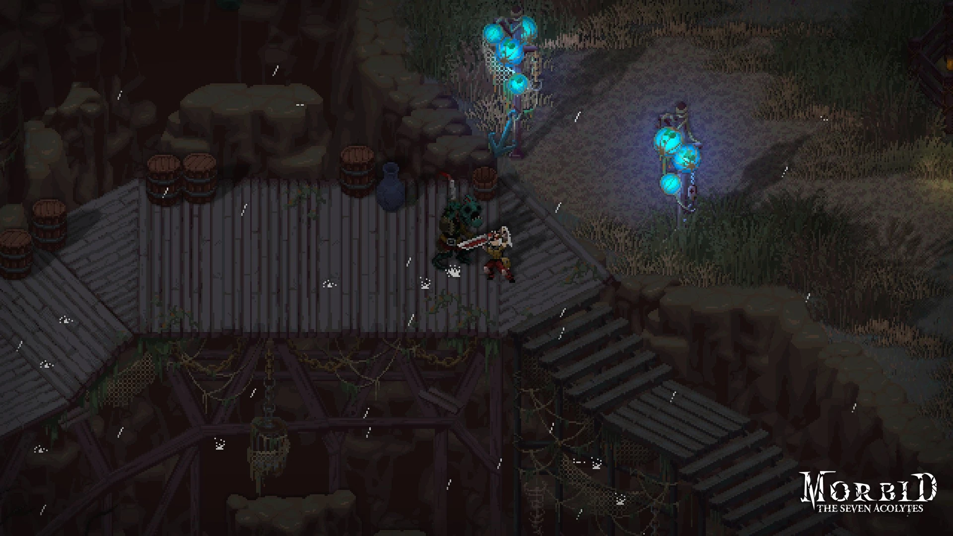 A creeping blight of cosmic horror consumes Mornia, leaving only madness and monstrous deities like the Striver of Cronos standing against the darkness. You embody the last Dibrom, tasked with halting this grotesque apocalypse before all hope is extinguished in this punishing top-down action RPG.
