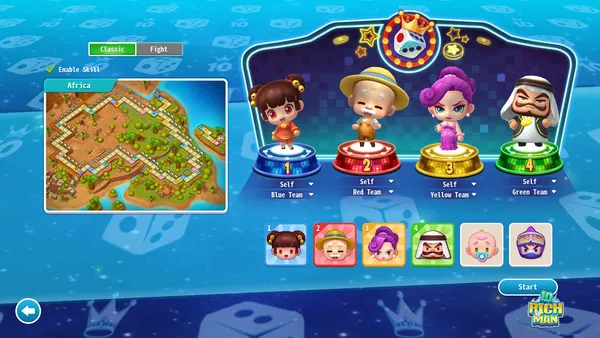 Players aim for ultimate financial superiority in this turn-based territory control game, navigating distinct map layouts with randomized events that test adaptability. Success hinges on clever asset development and crippling opponents' earnings using character-specific skills and economic traps. Enjoy deep strategic simulation blended seamlessly with quick, satisfying CASUAL gameplay loops.