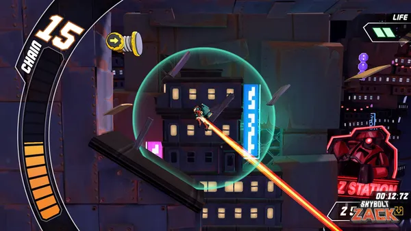 Pilot Zack, a high-speed vigilante, through sprawling cyberpunk cities where split-second decisions dictate survival. A sinister corporation is tightening its grip, and only your lightning reactions can stop their reign of digital terror from spreading across the net. Master the art of vertical traversal and high-altitude mayhem as you race against the clock.