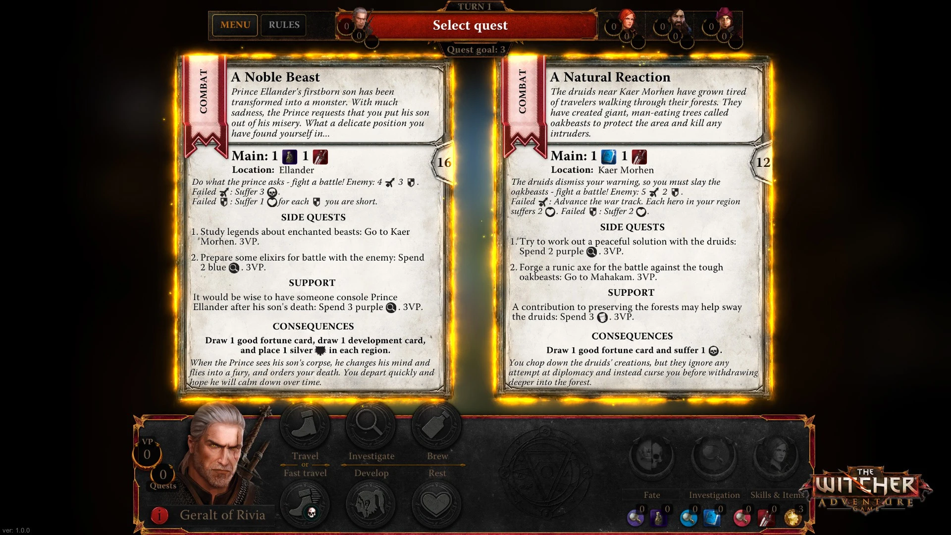 Gather your heroes and prepare your dice, for the Continent awaits adventurers ready to forge their legend in The Witcher Adventure Game. As one of four iconic characters—Geralt, Triss, Yarpen, or Dandelion—you traverse a sprawling map completing quests and engaging in deep role-playing encounters that shape the fate of the realms. This digital board game adaptation blends classic tabletop strategy with narrative depth drawn from Andrzej Sapkowski’s world.