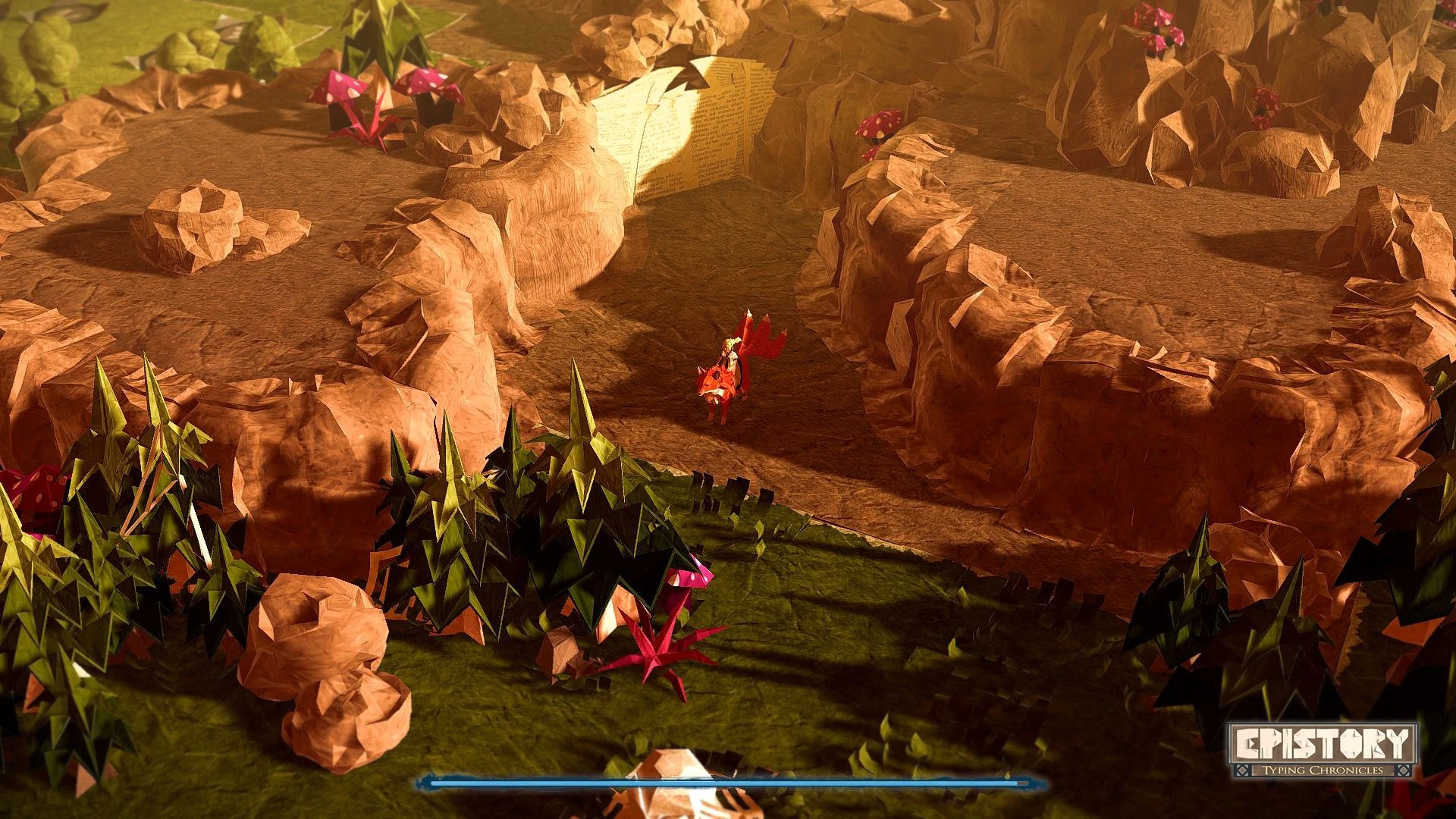Epistory - Typing Chronicles presenta un reino de papel que cobra vida mientras se escribe su historia. En esta aventura de acción indie, una musa atraviesa un universo de origami amenazado por una plaga. La progresión depende de la entrada de caracteres, transformando cada palabra escrita en la herramienta clave para combatir enemigos y desvelar secretos.