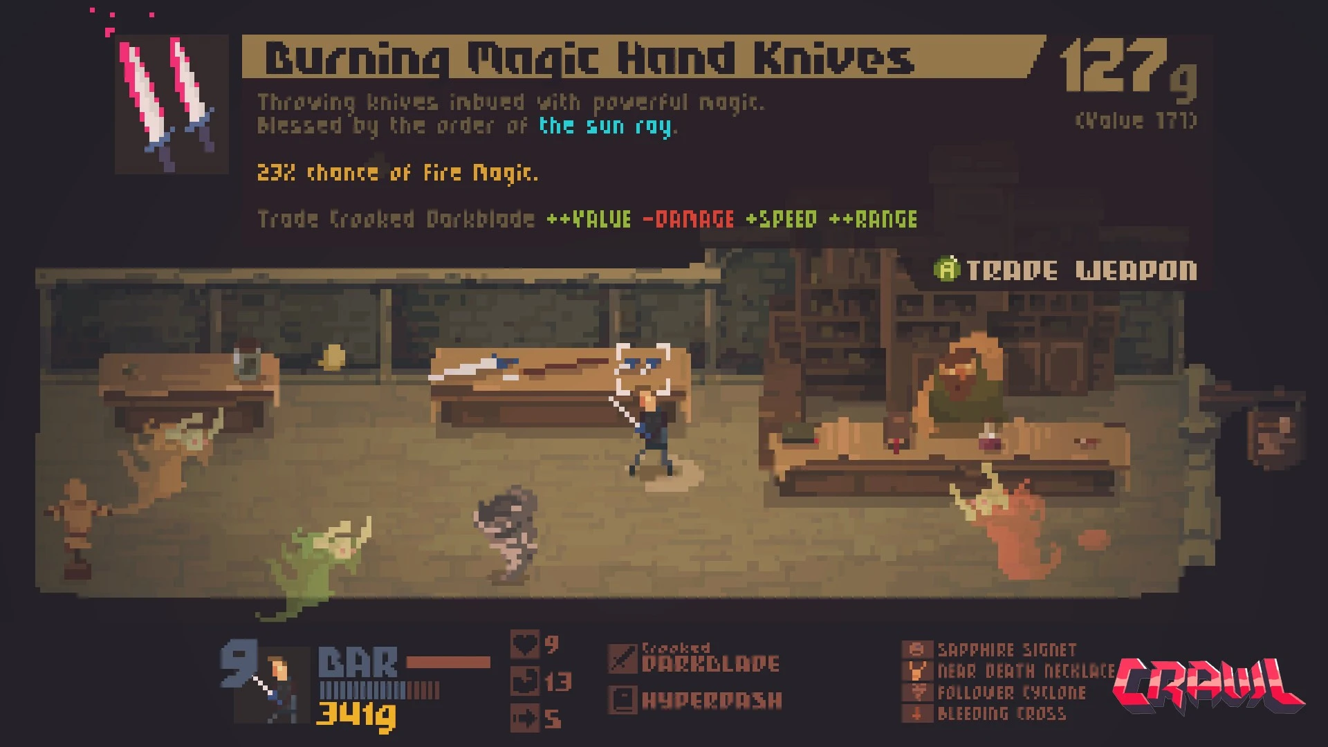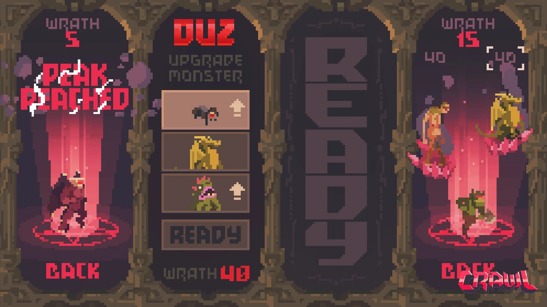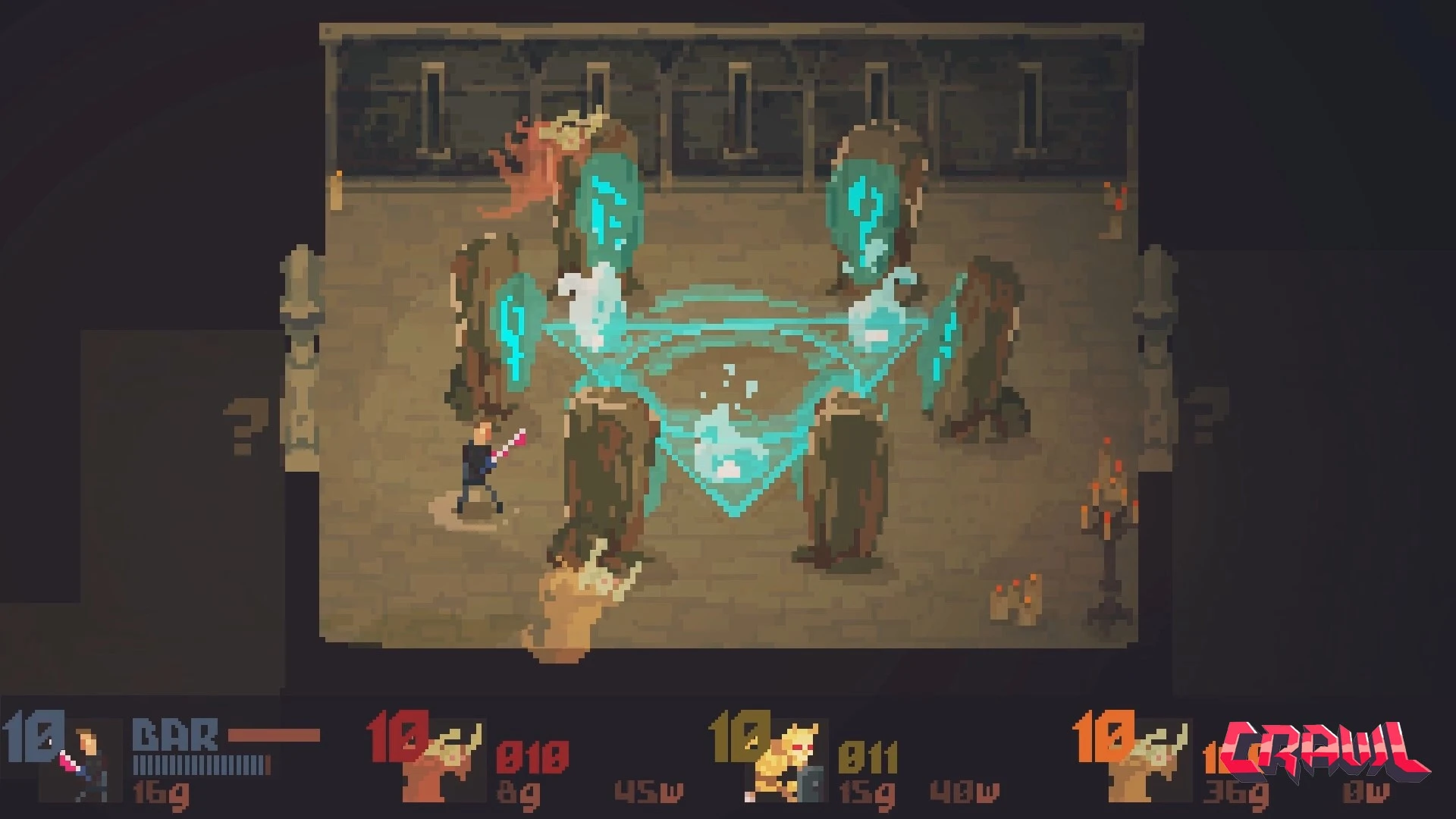 Crawl-ում մահը ընդամենը նոր սկիզբ է, քանի որ ձեր ընկերները սպասում են հարմար առիթի՝ ձեզ սպանելու և ձեր տեղը զբաղեցնելու համար: Այստեղ սովորական զնդաններն ու թակարդները վերածվում են կենդանի հակառակորդների, որոնք ղեկավարվում են իրական մարդկանց կողմից: Սա դինամիկ պայքար է գոյատևման համար, որտեղ հերոսի դերը փոխանցվում է մեկից մյուսին ամեն մի հաջողված հարվածից հետո: