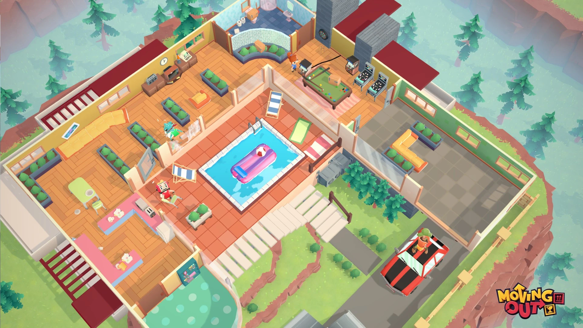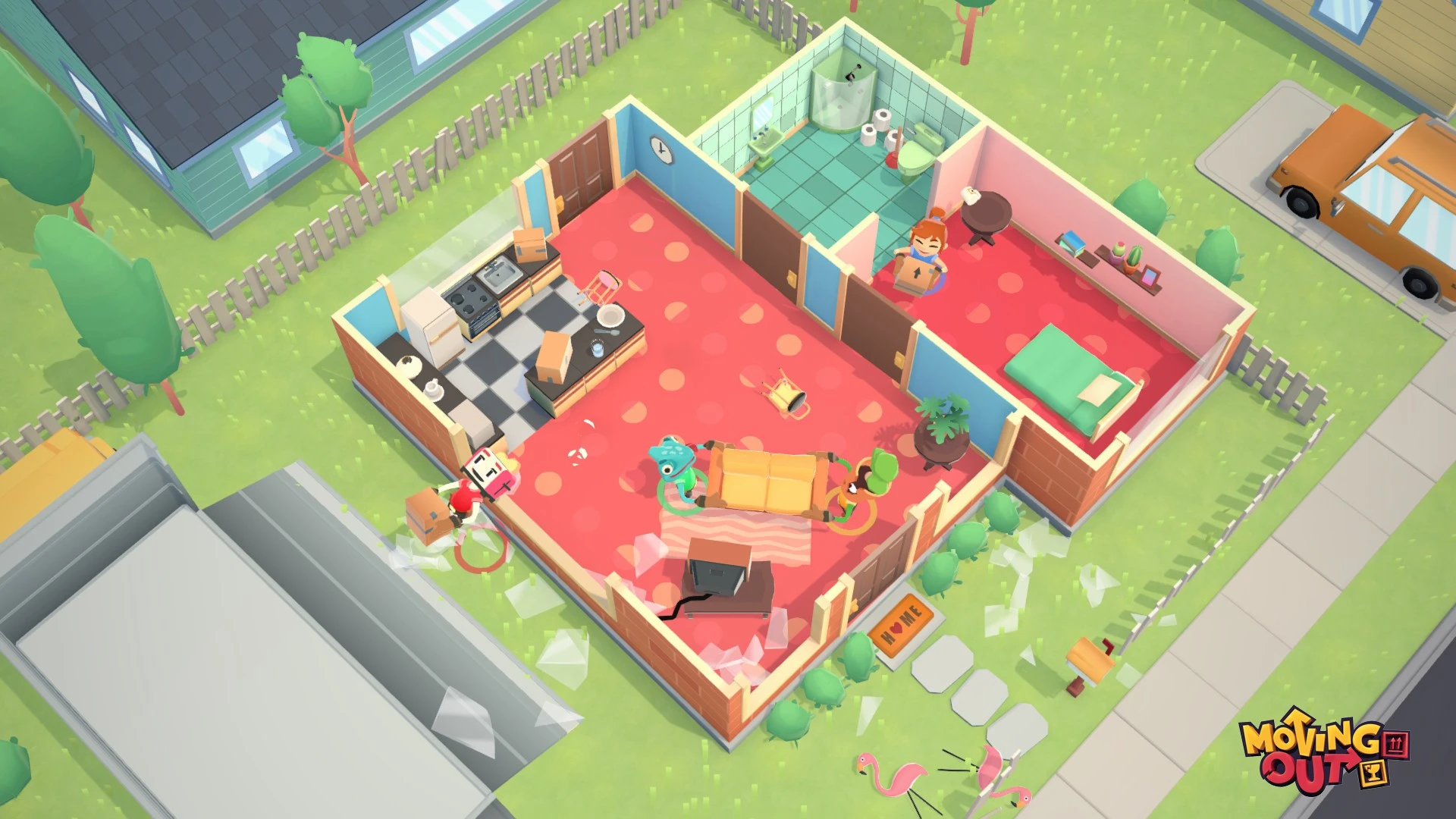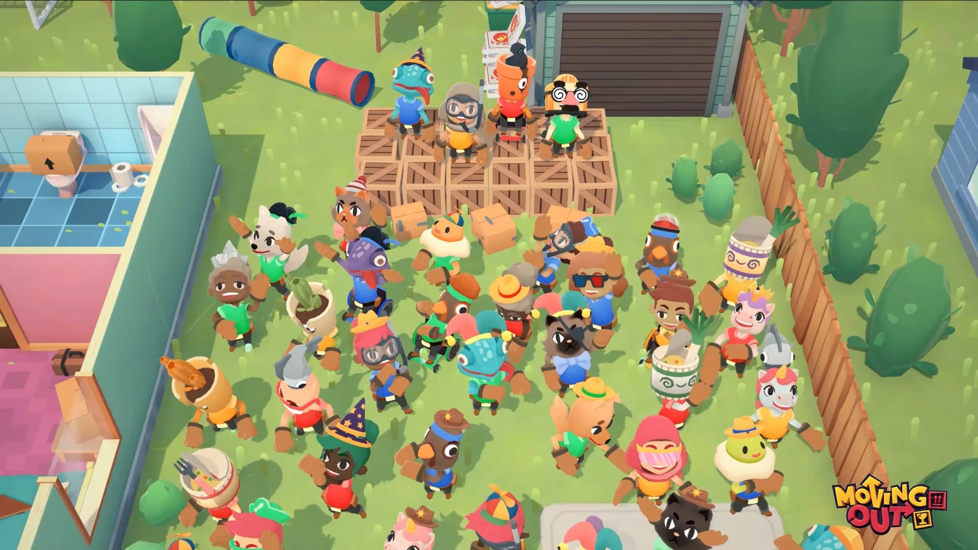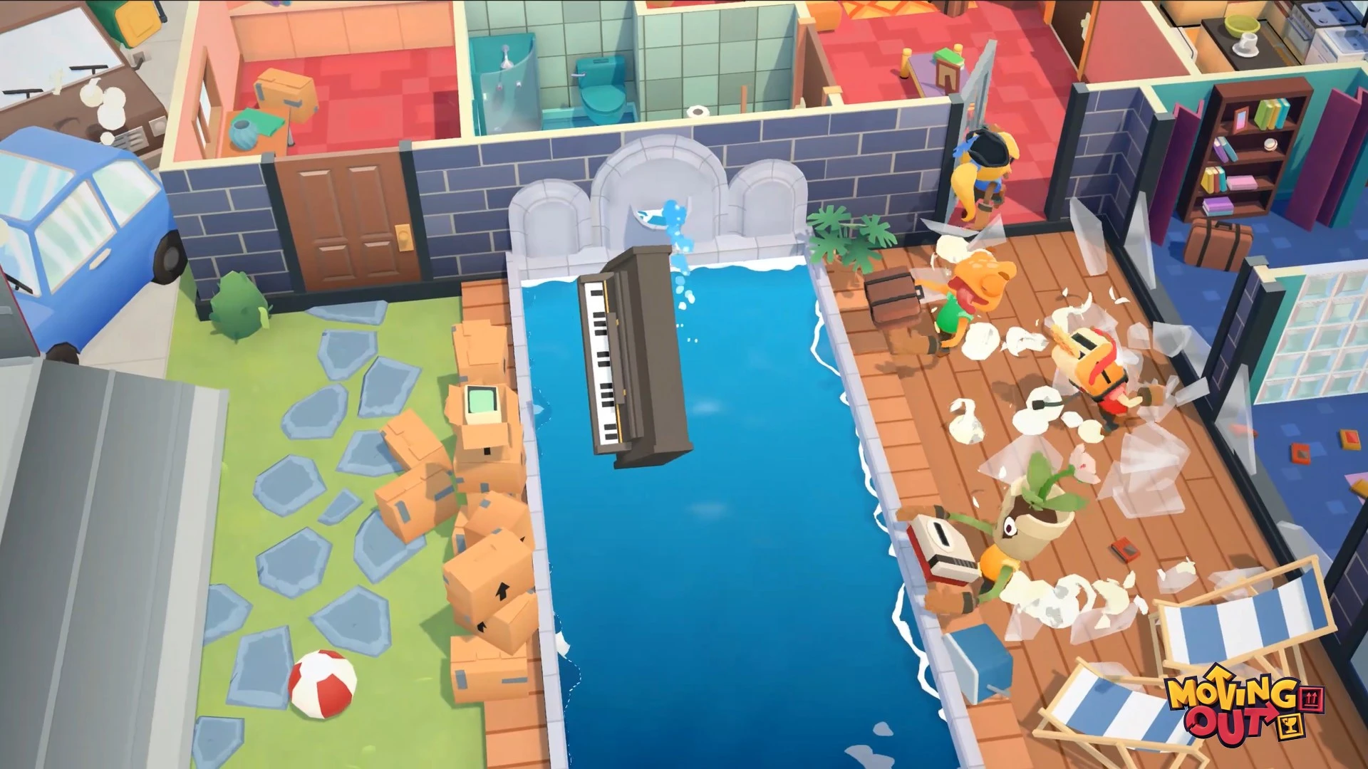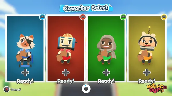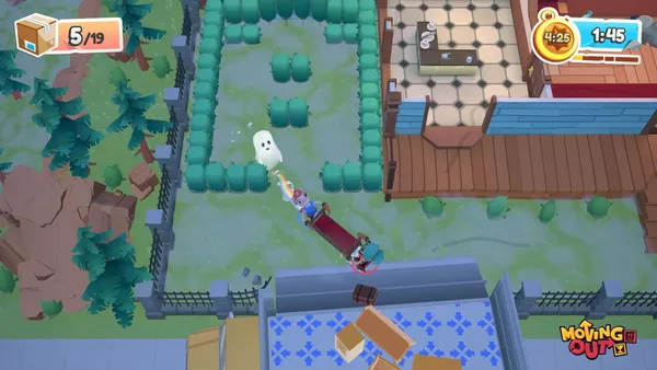 Moving Out խաղն աջակցում է համագործակցային ռեժիմին, որտեղ մինչև չորս խաղացող կարող են միավորել ջանքերը բարդ խնդիրներ լուծելու համար: Գործողությունների ճիշտ համակարգումն ու արագ կողմնորոշվելու ունակությունը կօգնեն ձեզ դառնալ ոլորտի իսկական վարպետ: Ինդի ժանրի այս ներկայացուցիչը փորձության է ենթարկում ձեր թիմային աշխատանքն ու հումորի զգացումը յուրաքանչյուր նոր մակարդակում: