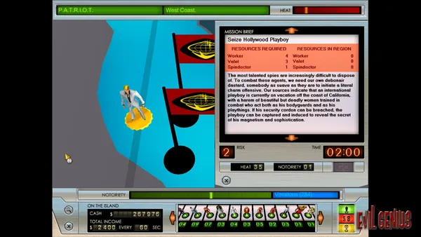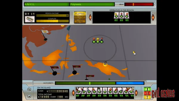 Эта криминальная стратегия требует тонкого управления ресурсами и персоналом. Нанимайте уникальных приспешников, чтобы они строили инфраструктуру, проводили исследования и отбивались от врагов, пока вы разрабатываете свой грандиозный план по установлению мирового господства. Каждая комната и каждый агент вносят вклад в общую стратегию победы над конкурентами.