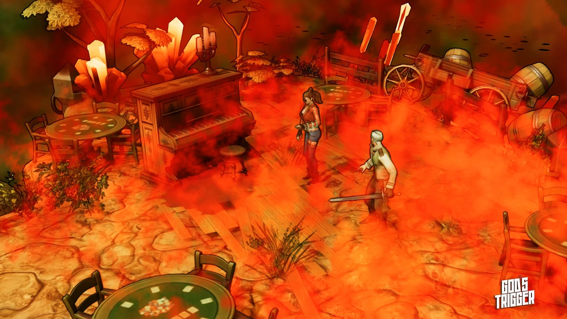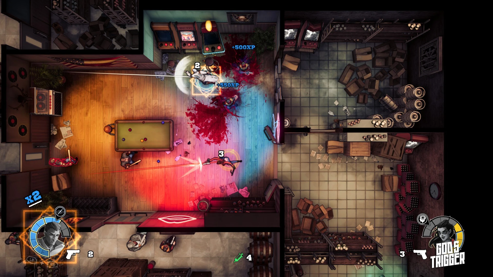 Двое непримиримых охотников отправляются в путешествие, чтобы положить конец существованию самого Творца. God's Trigger — это бескомпромиссный арена-экшен, где взрывная перестрелка требует ювелирного позиционирования и синхронного взаимодействия.