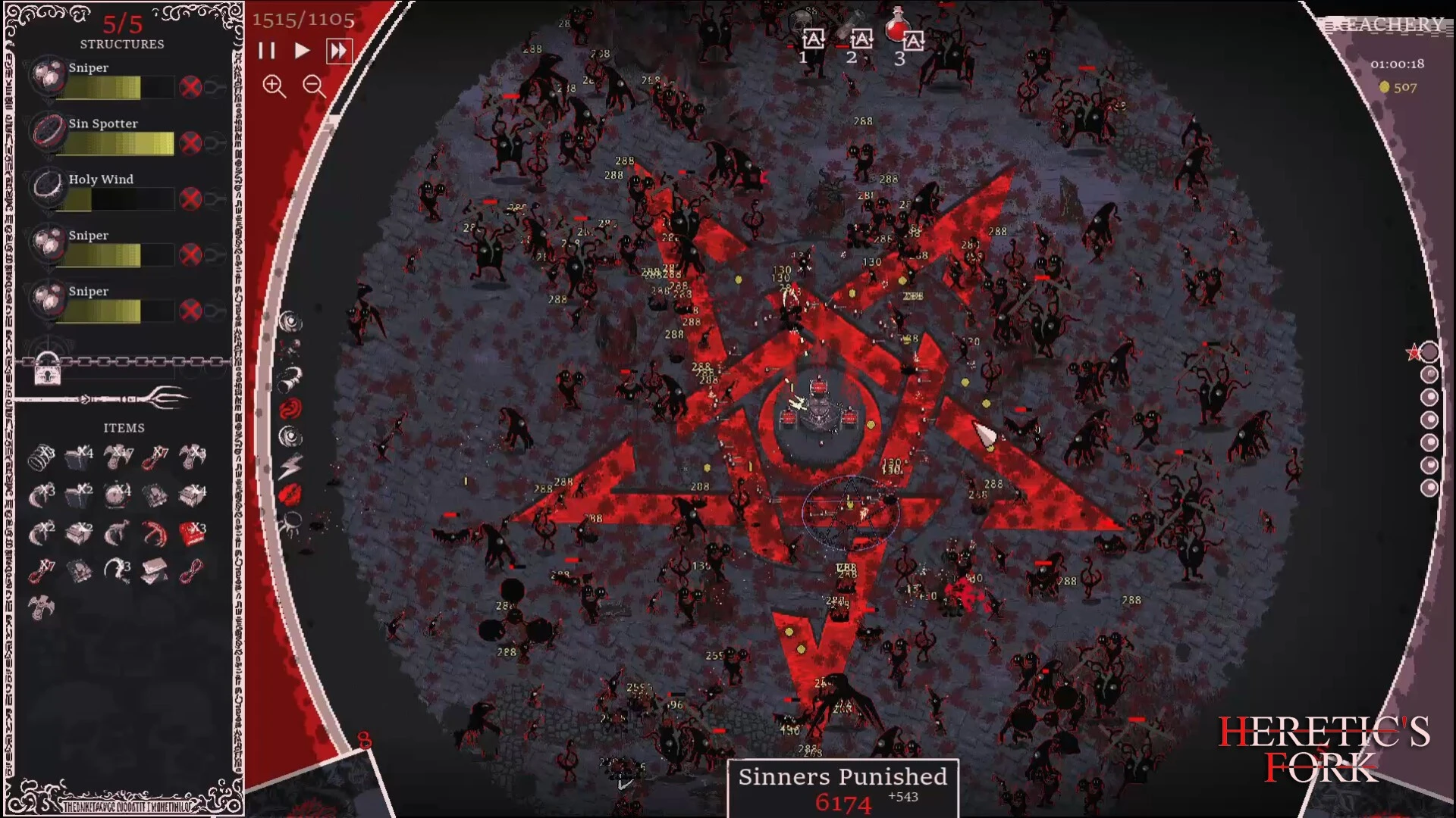 Ваш персонаж — рыцарь, наделенный властью изгонять легионы порождений Тьмы. После неудачного противостояния зловещему культу вы получаете вторую жизнь и уникальную возможность — в любом бою погибший противник может стать частью вашей армии, если правильно применить силу «Вилки Еретика». Это сочетание рогалика и экшена с элементами стратегии, где каждое решение формирует ваше растущее войско.