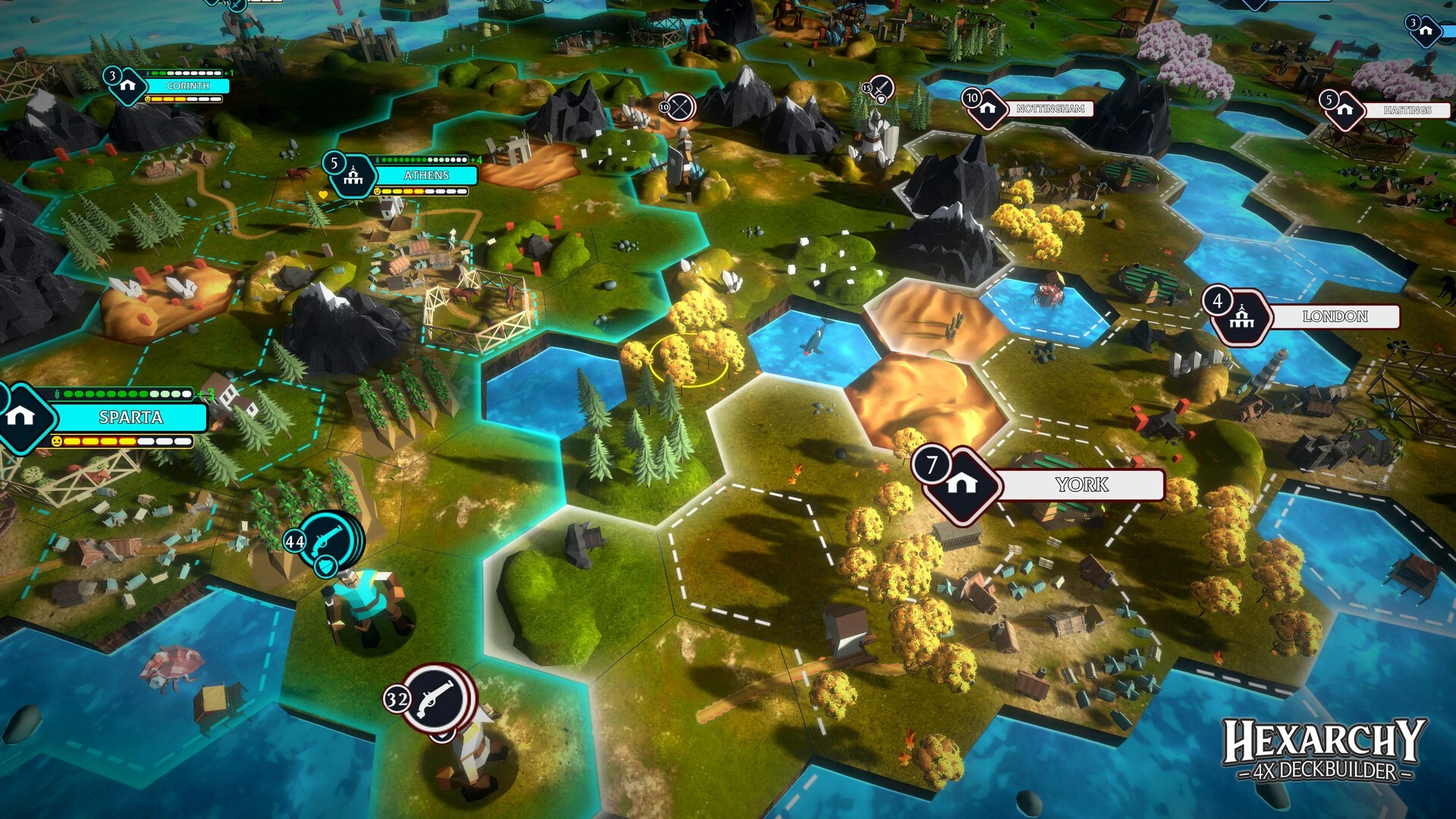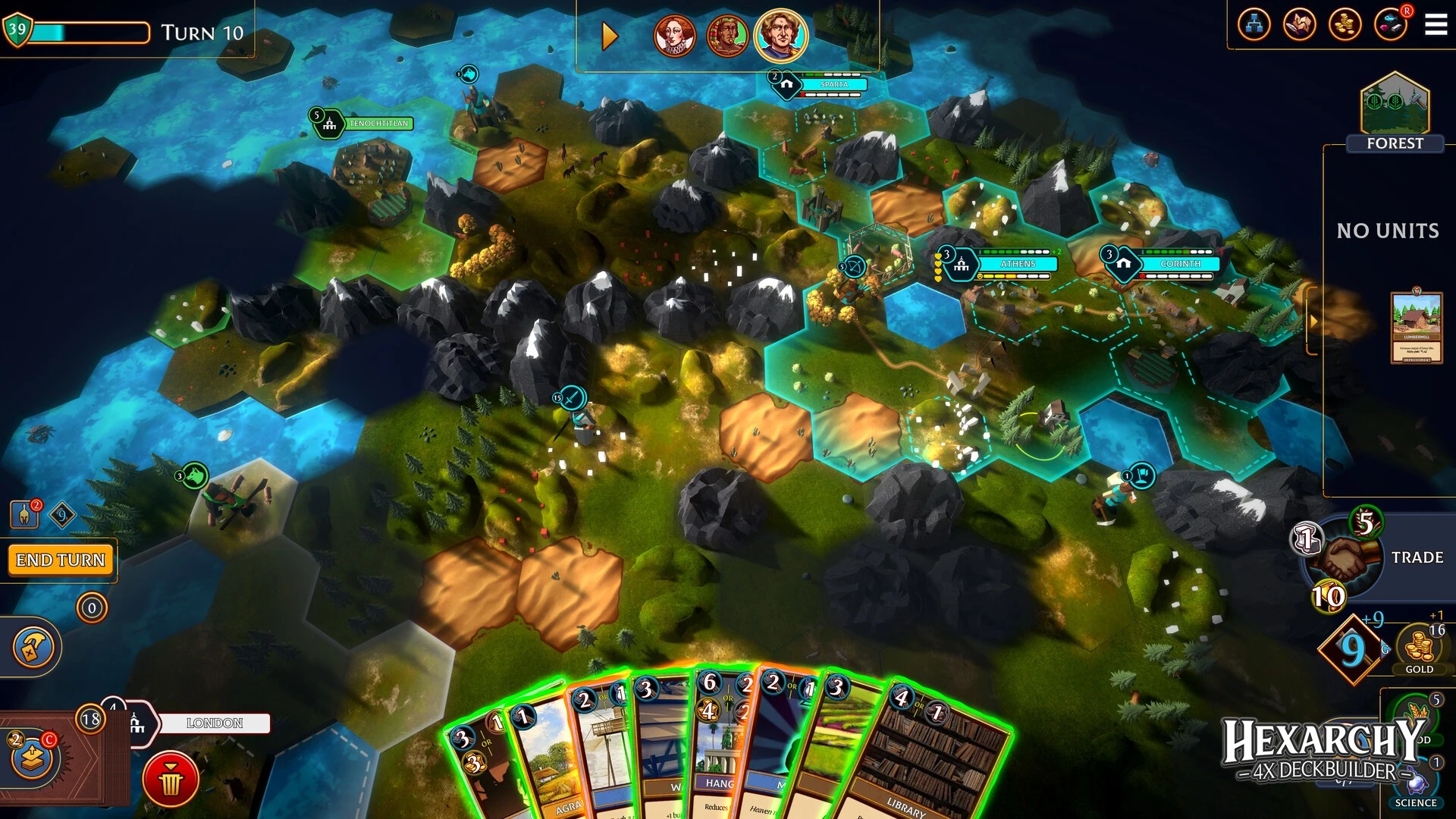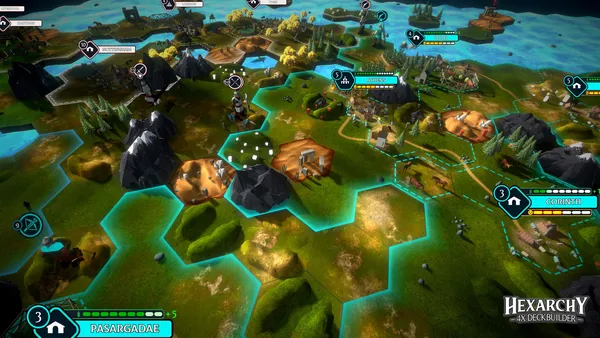 - Стройте и защищайте поселения, используя уникальные юниты для блокировки ключевых гексагонов.