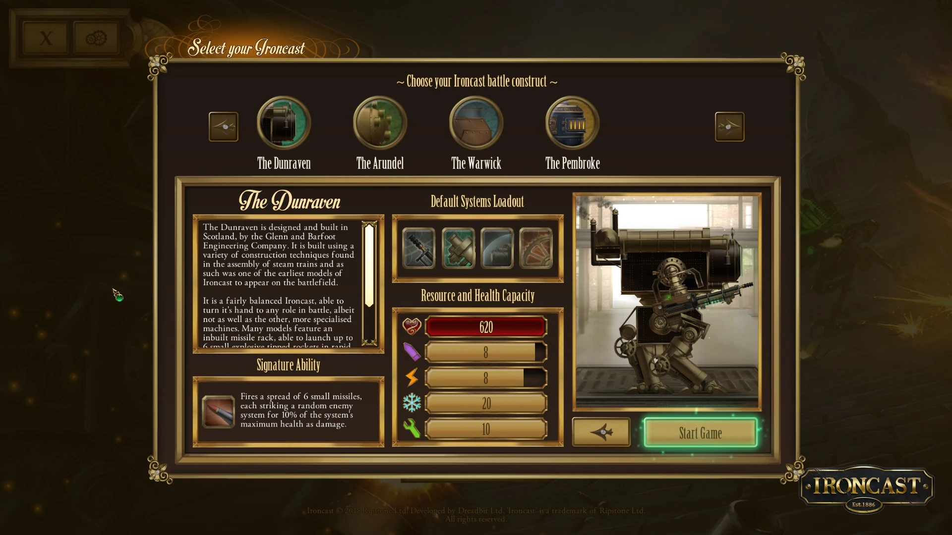 В мире стимпанка, где викторианская эпоха встретилась с гигантской военной техникой, вы принимаете командование машиной Ironcast. Эта грозная машина становится вашим последним оплотом в борьбе против роботизированного мятежа.
