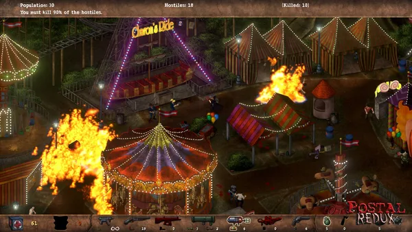 POSTAL Redux переносит вас на улицы альтернативного Чикаго, где царит полный хаос и анархия. Главный герой, известный как Чувак, решает, что ему надоело жить в серости, и начинает собственную кровавую кампанию против всего общества. Это не просто экшен — это столкновение с непредсказуемой и ультранасильственной средой, где правила устанавливаете вы сами.
