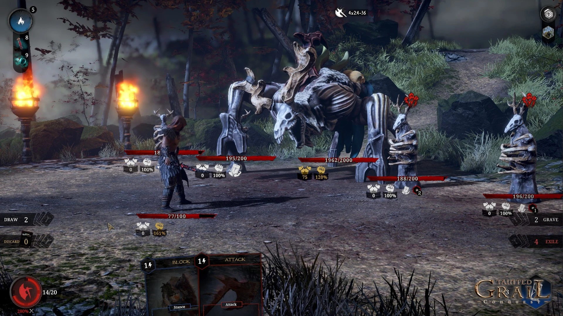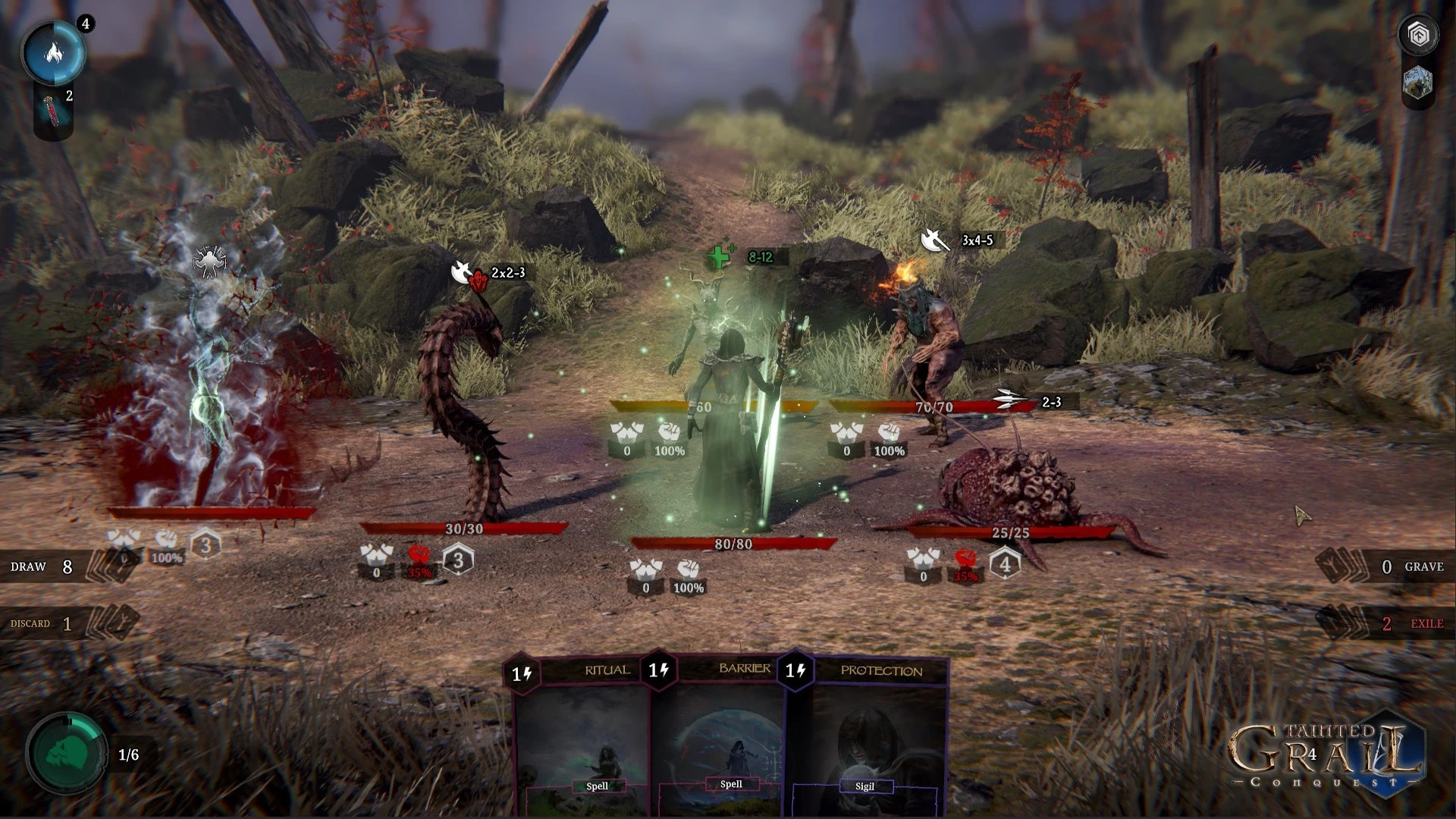 - Уникальная карточная боевая система в сеттинге Tainted Grail, требующая максимальной тактической изобретательности.