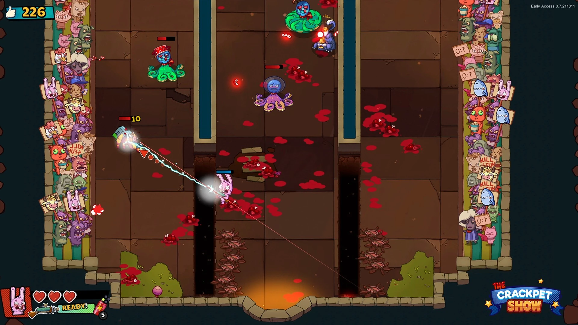 Добро пожаловать в кровавое телевизионное шоу, где выживают только самые жестокие и изобретательные. The Crackpet Show превращает гладиаторские бои в зрелище для масс: ваша задача — уничтожать орды мутантов и врагов, используя разнообразное модифицируемое оружие и оттачивая навыки выживания на аренах, кишащих опасностями. Участвуйте в безумном экшене, чтобы завоевать любовь публики и не стать очередным кормом для монстров.