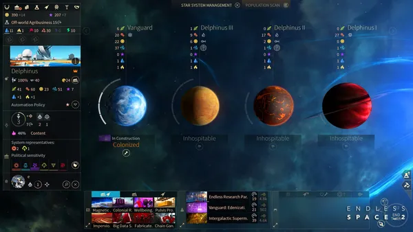 Внутрішня політична складова змушує майстерно маневрувати між вимогами сенату та нагальними потребами колонізації нових планет. Гравці самостійно проєктують футуристичні флотські з'єднання та досліджують приховані аномалії в надії отримати ресурси Вічних. Тонка дипломатія та розвинена система ідеологій перетворюють кожну партію на унікальну хроніку боротьби за виживання та велич.