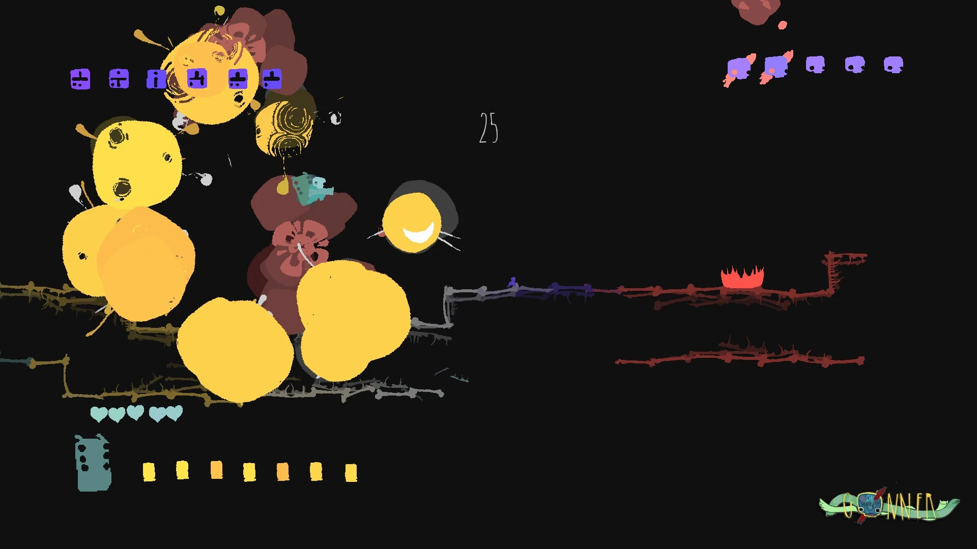 Ікк постійно втрачає голову — і це не метафора, а ключова особливість життя у химерному світі GoNNER. У ролі цієї дивної істоти ви мандруєте хаотичними рівнями, де кожен крок змінює кольорову палітру та розташування пасток. Цей інді-платформер пропонує швидкий ігровий процес, заснований на вмінні вчасно стрибати, влучно стріляти та комбінувати різні типи голів для отримання унікальних здібностей.