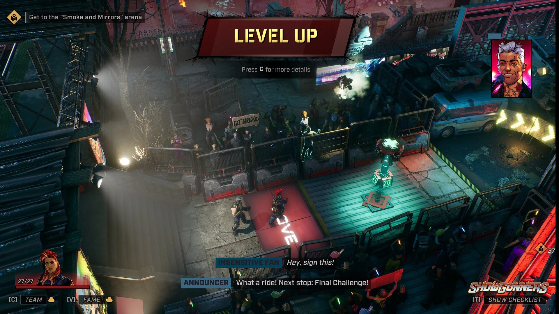 У жорстокому мегаполісі майбутнього найвищим рейтингом володіє криваве реаліті-шоу, де учасники змагаються за життя в прямому ефірі. Скарлетт Мартілло має подолати смертоносні арени, наповнені підступними пастками та професійними вбивцями, аби здобути обіцяну свободу. Кожен успішний маневр під прицілом камер не лише наближає до мети, а й завойовує прихильність глядачів, здатних вплинути на перебіг битви. Ця покрокова тактична стратегія вимагає від гравців ретельного планування та ефективного керування загоном у динамічних умовах. Використання інтерактивного оточення та унікальних навичок бійців стає вирішальним фактором для перемоги над супротивниками. Проєкт Showgunners пропонує унікальне поєднання тактичної глибини та видовищності антиутопічного шоу. - Гнучка бойова система з акцентом на взаємодію з оточенням та використання навколишніх засобів знищення. - Механіка популярності та спонсорів, де лояльність аудиторії забезпечує життєво необхідні переваги. - Можливість запустити гру Showgunners миттєво на будь-якому доступному пристрої через хмарний сервіс GeForce NOW. Шлях до слави прокладений через випробування, де немає місця для помилок.